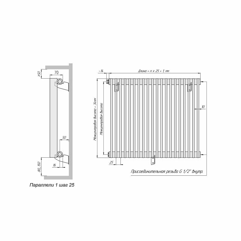 Приборы серии Параллель предназначены для установки в домах и квартирах, общественных, медицинских и образовательных учреждений. Стальная конструкция выглядит максимально стильно, современно и лаконично. Два коллектора соединены между собой прямоугольными трубами 40х10 мм.Присоединительная внутренняя резьба G1/2".Рабочее давление до 15 атм.Испытательное давление не менее 22,5 атм.Максимальная температура теплоносителя 120 °C. Количество секций: 10.Мощность при значении температурного напора ΔT70 (95°/85°/20°С), Вт: 1224.Вес, кг: 23,8Размеры, мм: 250х1784х70 Объем, л: 4,87.Межосевое расстояние, мм: 1750.Подключение: боковое. Цвет: белый RAL 9016. В комплект поставки входят:-радиатор - 1 шт;-паспорт - 1 шт; Гарантия 5 лет, срок службы – 25 лет!