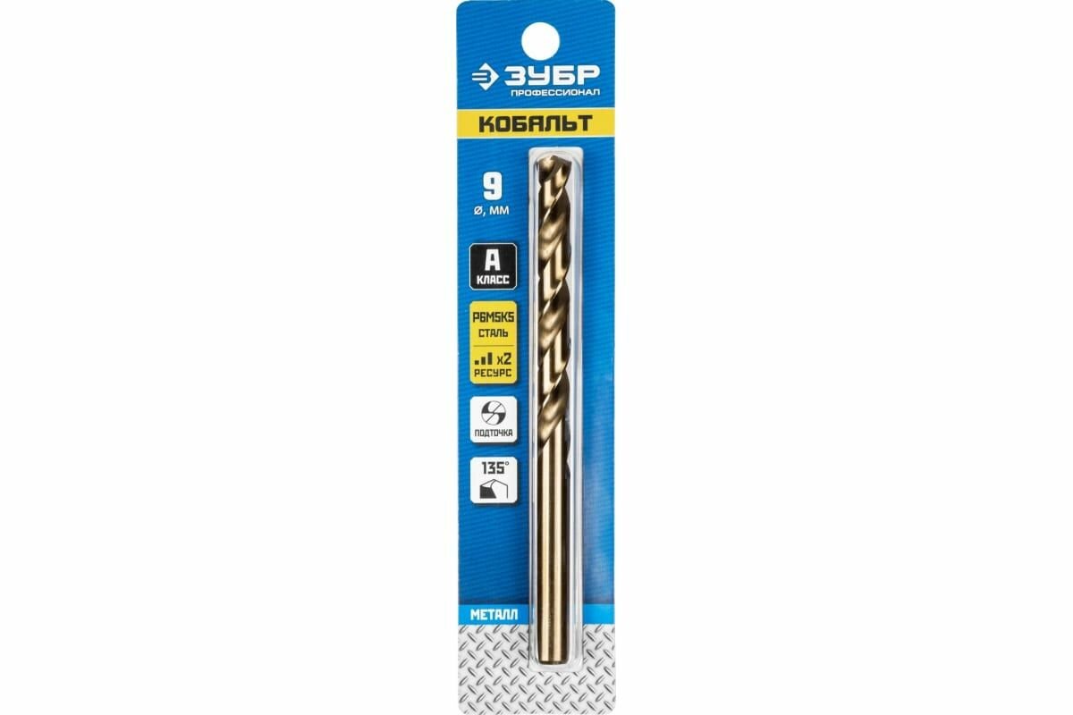 ЗУБР КОБАЛЬТ 9.0х125мм, Сверло по металлу, сталь Р6М5К5, класс А