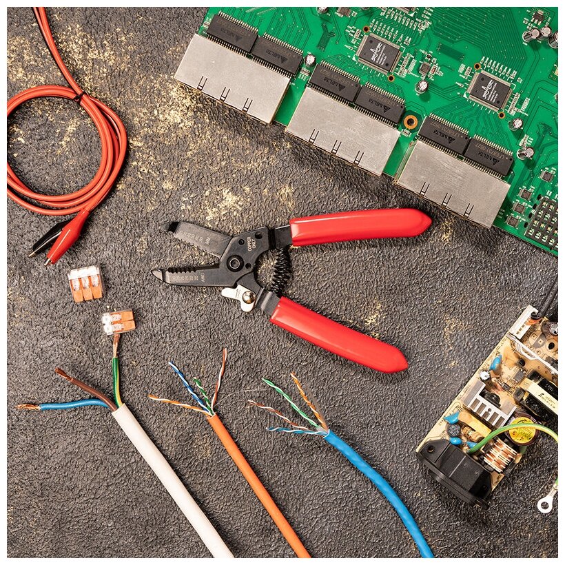 Инструмент для зачистки кабеля REXANT предназначен для снятия внешней изоляции одножильного и многожильного кабеля в диапазоне 0.25-0.8 мм.