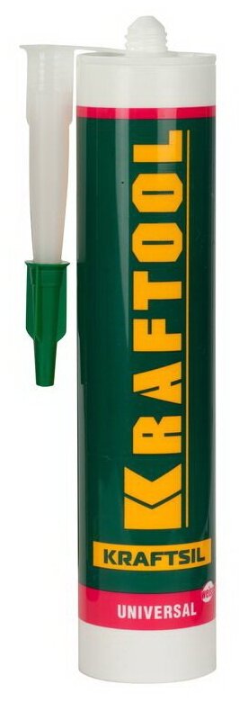 Профессиональный однокомпонентный силиконовый герметик Kraftool широкого применения, затвердевающий под воздействием влаги, содержащейся в воздухе. Применяется для внутренних и наружных работ: уплотнения, герметизации и заполнения любых материалов, кроме материалов, корродирующих в кислотной среде. Идеален при использовании в подвижных швах в широком диапазоне температур. Внимание! Непригоден для окрашивания, нельзя использовать для аквариумов, зеркал и в местах возможного контакта с пищей и питьевой водой.Преимущества Высокоэластичный Влагостойкий Превосходная адгезия к большинству материалов (металлы, стекло, древесина, керамика, пластик, окрашенные поверхности) Устойчив к атмосферным и химическим воздействиям Долговечный (около 50 лет)