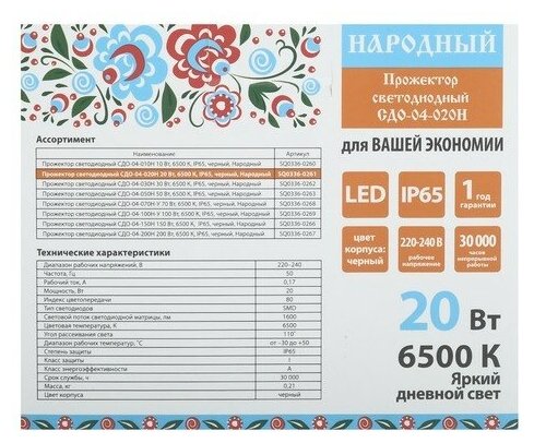 - Материал отражателя – поликарбонат (для 200 Вт – алюминий).
