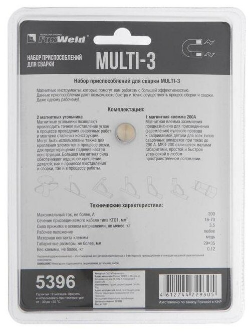 Набор для сварки FoxWeld MULTI-3 5396 - магнитные инструменты, которые помогут вам работать с большей эффективностью. Данные приспособления дают возможность быстро и точно осуществлять процесс сборки и сварки. Даже одному рабочему!