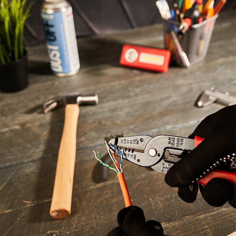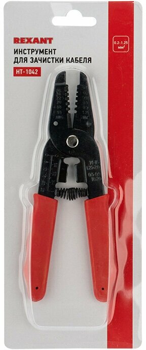 Инструмент REXANT предназначен для снятия внешней изоляции одножильного и многожильного кабеля в диапазоне 0.2-1.25 мм.