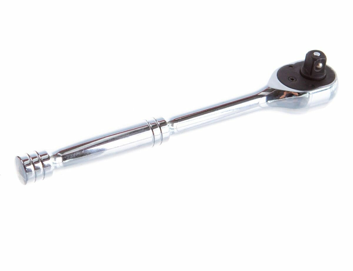 Трещотка с прямой металлической ручкой эврика 3/8 72-зубцовая представляет собой удобный инструмент для монтажа и демонтажа крепежных элементов различного вида. Благодаря флажковому переключателю и кнопке быстрого сброса можно быстро сменить направление вращения или оснастку. Технические характеристики трещотки Эврика Трещетка: есть Диэлектрическое покрытие: нет Количество зубьев, шт: 72 Шарнирный механизм: нет Посадочный квадрат: 3/8 дюйма Удлинитель: нет