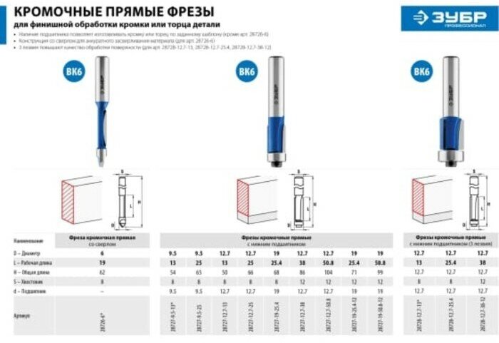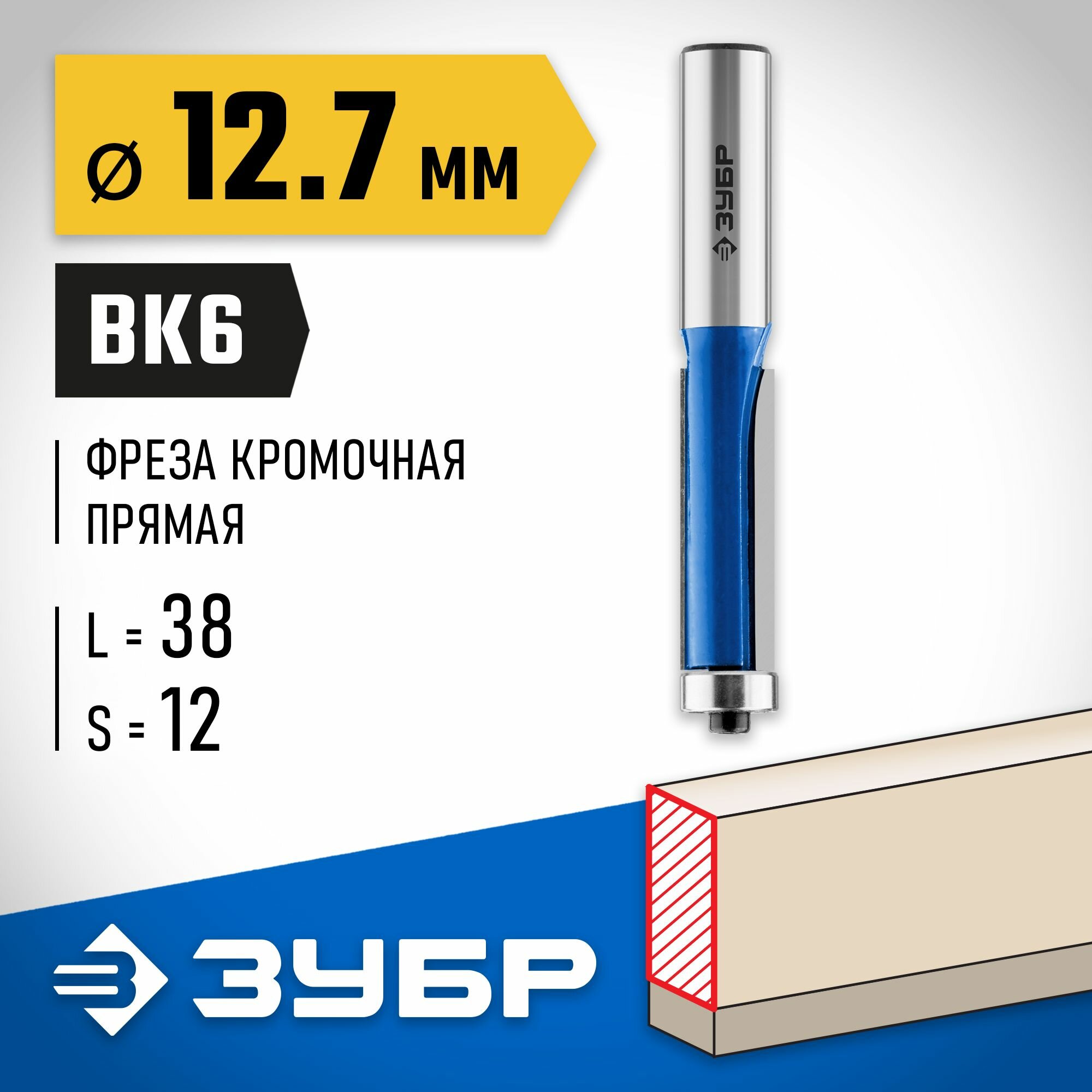 Кромочная фреза ЗУБР Ф12.7мм s12мм 38мм (28727-12.7-38)
