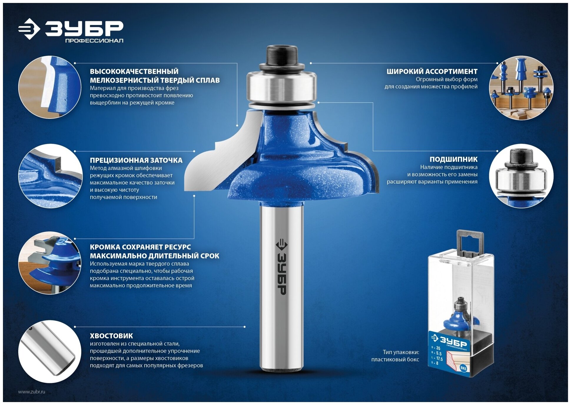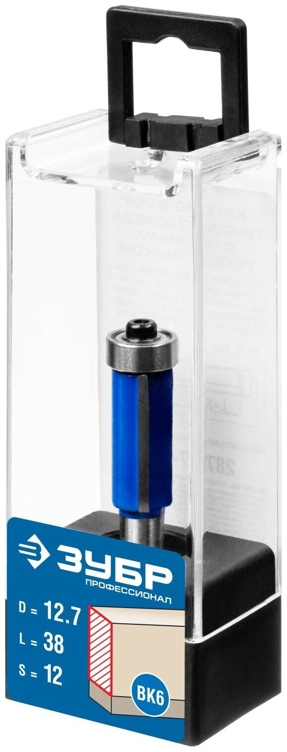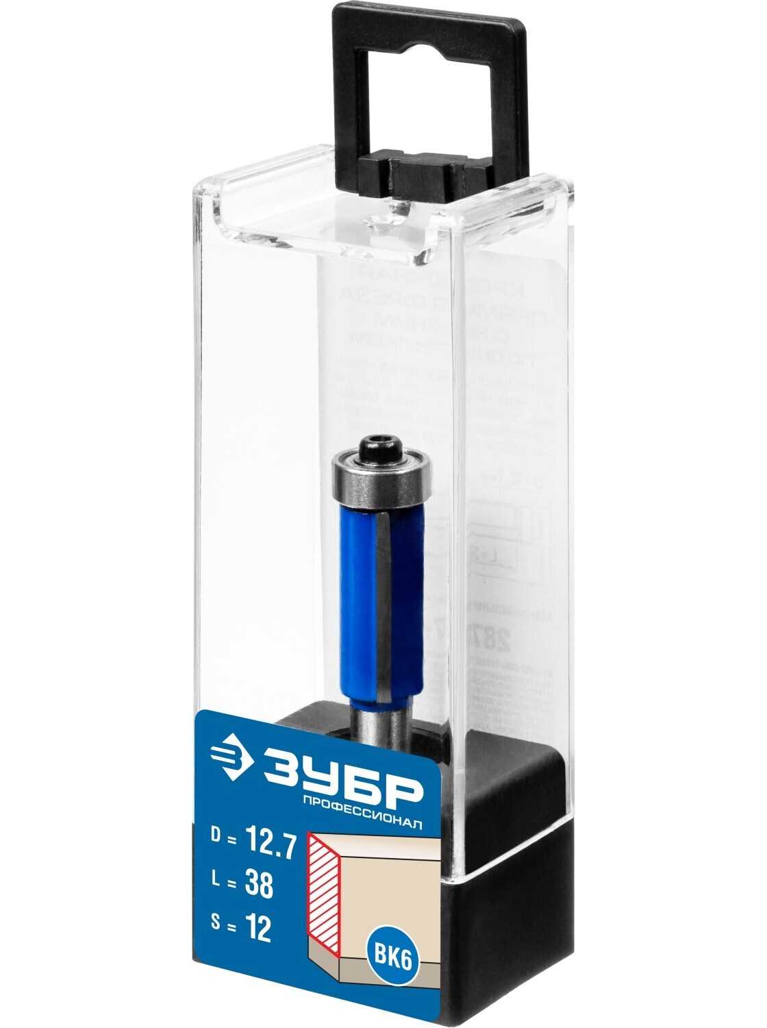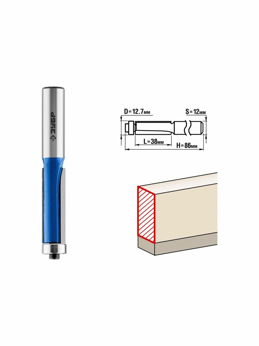 Фреза кромочная с нижним подшипником, D= 12,7мм, рабочая длина-38мм, хв.-12мм, d-12,7мм, ЗУБР Профессионал