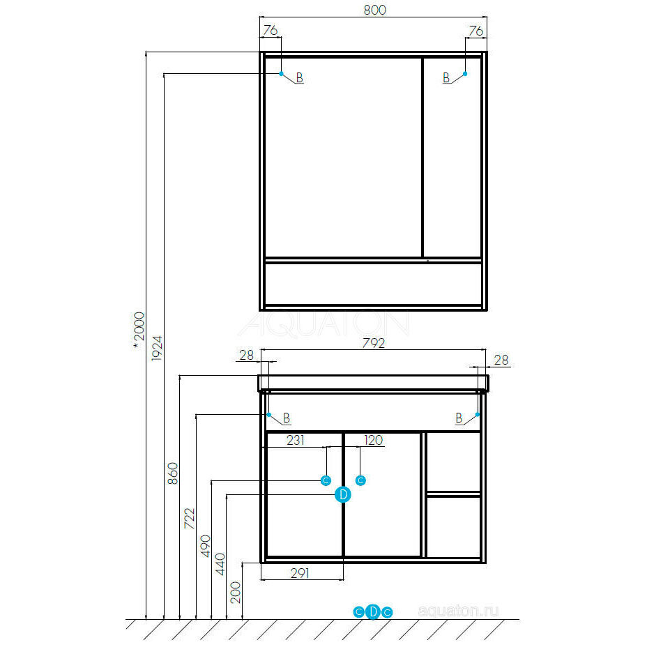Зеркало-шкаф АКВАТОН 1a237702fax10