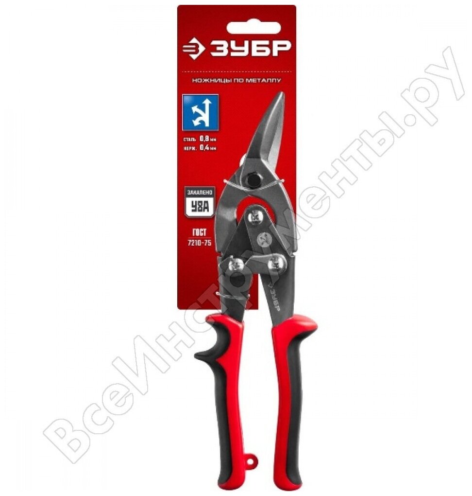 Ножницы по металлу Зубр () предназначены для точного прямого, левого, правого и фигурного резов для сталей повышенной твердости, нержавеющей стали и цветных металлов.Преимущества Двухрычажный механизм Закалённые режущие кромки Удобные рукояткиобеспечивают надежный хват иминимальное скольжение рук вовремя работы Используется для проведения работ с листовым металлом, в том числе, с нержавеющей и особо прочной сталью Соответствует требованиям ГОСТ 7210-75 по твёрдости, работоспособности и качеству