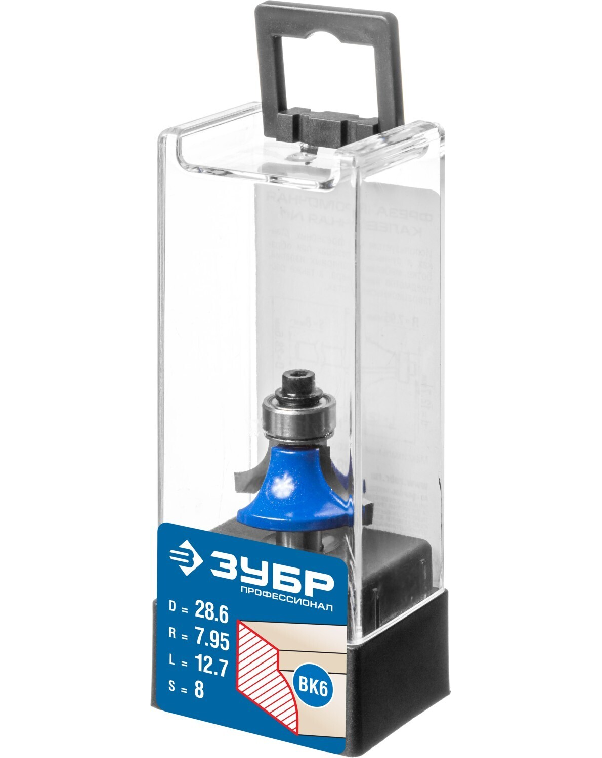 Фреза кромочная калевочная №1, D= 28,6мм, рабочая длина-12,7мм, радиус-7,95мм, хв.-8мм, d-12,7мм, ЗУБР Профессионал