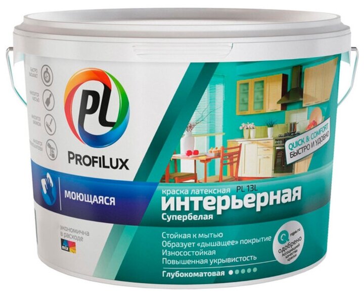 Латексная моющаяся краска Profilux Pl- 13l ЗИМА 3кг вд латекс. моющаяся износоуст. СУПЕРбел база 1