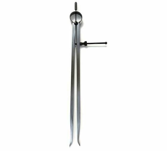 Кронциркуль для внутренних измерений представляет собой вспомогательное приспособление для слесарных работ. Предназначен, как вспомогательное приспособление в комплекте с линейкой или штангенциркулем, для оценочного измерения внутренних линейных размеров, интервалов, различных канавок в сложных деталях, имеющих профиль в виде уступов, ступенек, а также для проведения разметки заготовок. Оснащен регулировочным винтом.