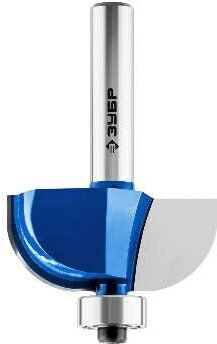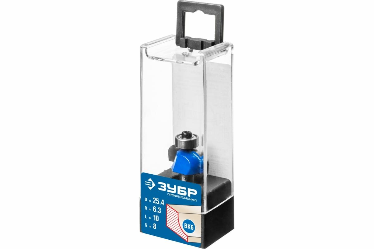 Фреза кромочная калевочная №2, D= 25,4мм, рабочая длина-10мм, радиус-6,3мм, хв.-8мм, d-12,7мм, ЗУБР Профессионал