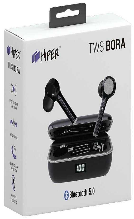 TWS BORA - премиальная TWS- гарнитура, с высоким качеством звука, Bluetooth 5.0 и повышенной влагозащитой (IPХ6). Мощный новый чип Airoha 1536. Надежность и качество известного производителя, а также высококачественный звук и отсутствие зависаний. Hiper TWS BORA отличаются высоким качеством звука во всем частотном диапазоне с акцентом на хорошую детальность и полноту звуковой картины. Гарнитура подойдет как ценителям звука, так и людям, слушающим музыку по дороге домой. Устойчивый сигнал позволит пользоваться гарнитурой без помех и потери сигнала расстоянии до 15 метров. Чехол-аккумулятор позволяет совместить хранение и зарядку, пока вы не слушаете музыку, ваши наушники не просто лежат в чехле, они подзаряжаются. Время работы гарнитуры без чехла до 4 часов, с чехлом до 26 часов.