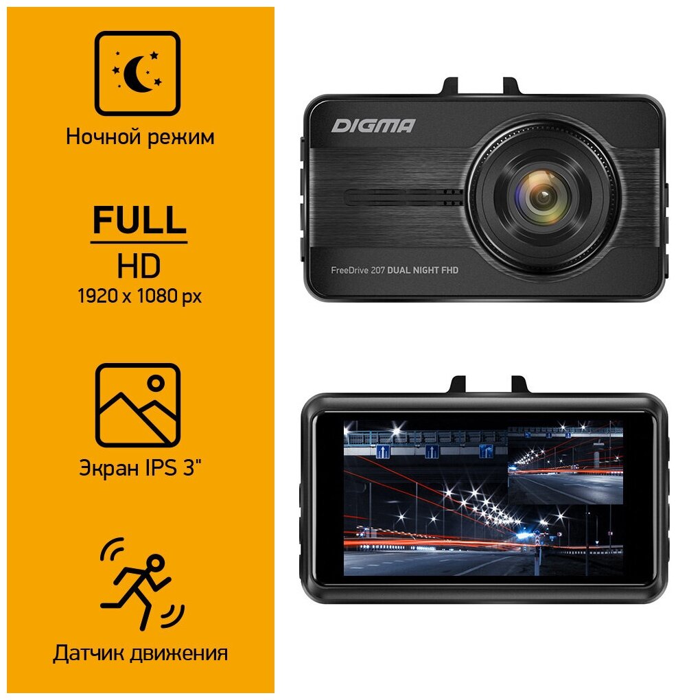 Видеорегистратор DIGMA FreeDrive 207 DUAL Night FHD черный [freedrive 207d]