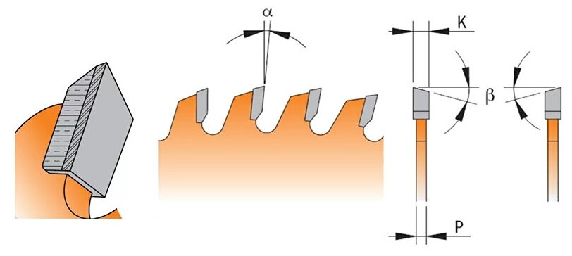 оптимальное качество при пилении торцев для идеальных соединений сложных профилей. Оборудование - форматно- раскроечный станок, одно- или двухлезвийная торцовочная пила. Материал - мягкая или твёрдая древесина, MDF, ПВХ. Технические параметры твердосплавных зубьев - высота зуба 8 мм, хромосодержащий сплав марки KCR06, степень твёрдости (HV10) 1,950 и сопротивление поперечному разрыву (N/мм2) 2,300.