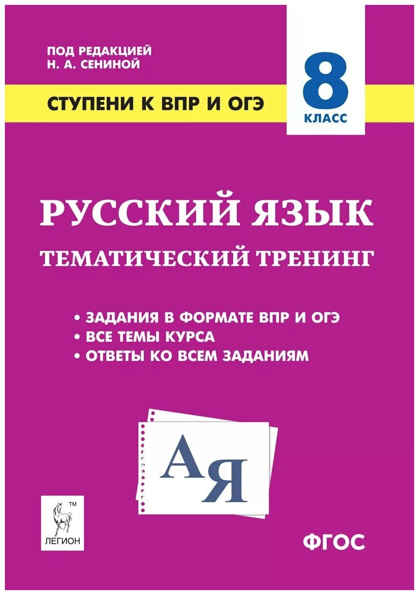 Русский язык. 8 класс. Ступени к ВПР и ОГЭ. Тематический тренинг. (Сенина Наталья Аркадьевна, Гармаш Светлана Васильевна, Федотенко Светлана Викторовна, Гарькавская Ольга Геннадьевна); Легион, 2020