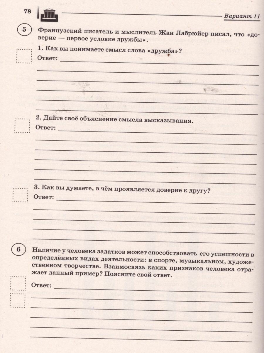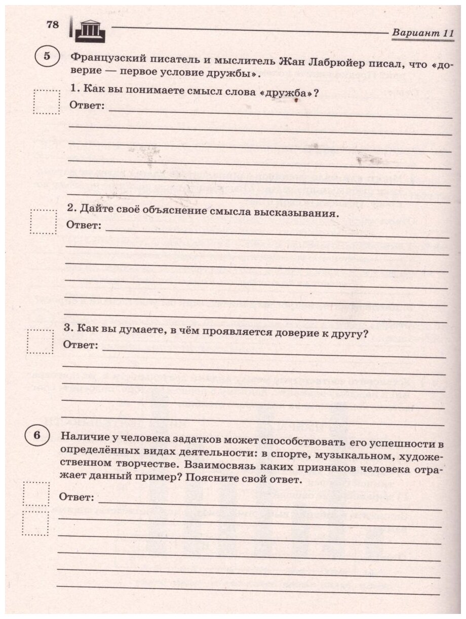 Наше пособие предназначено для подготовки к ВПР по обществознанию и содержит 15 авторских тренировочных вариантов, составленных по описанию и образцу ВПР, опубликованными на сайте 29.11.2019.Книга содержит образец работы с комментариями и рекомендациями по выполнению заданий, а также развёрнутые ответы ко всем заданиям и критерии их оценивания. В приложении приведён словарь обществоведческих терминов.Наша книга поможет:• учителям подробно изучить модель проверочной работы, её описание и систему оценивания;• шестиклассникам ознакомиться с образцами работы, а также в кратчайшие сроки повторить и систематизировать пройденный материал;• родителям проконтролировать процесс подготовки их детей к серьёзному испытанию.Пособие предназначено учителям, учащимся 6-х классов и их родителям.В 7-х классах книгу можно использовать в начале учебного года в качестве диагностической проверочной работы.