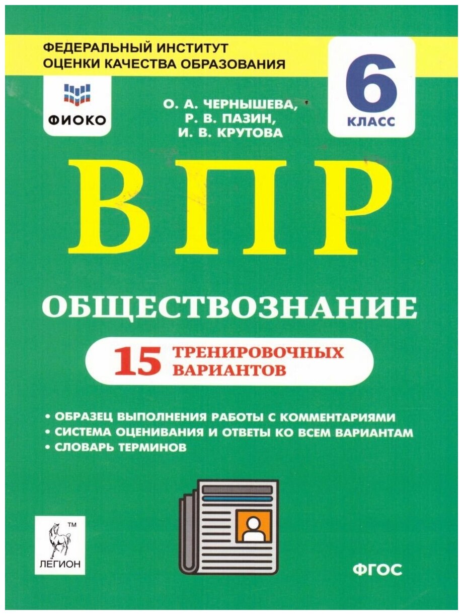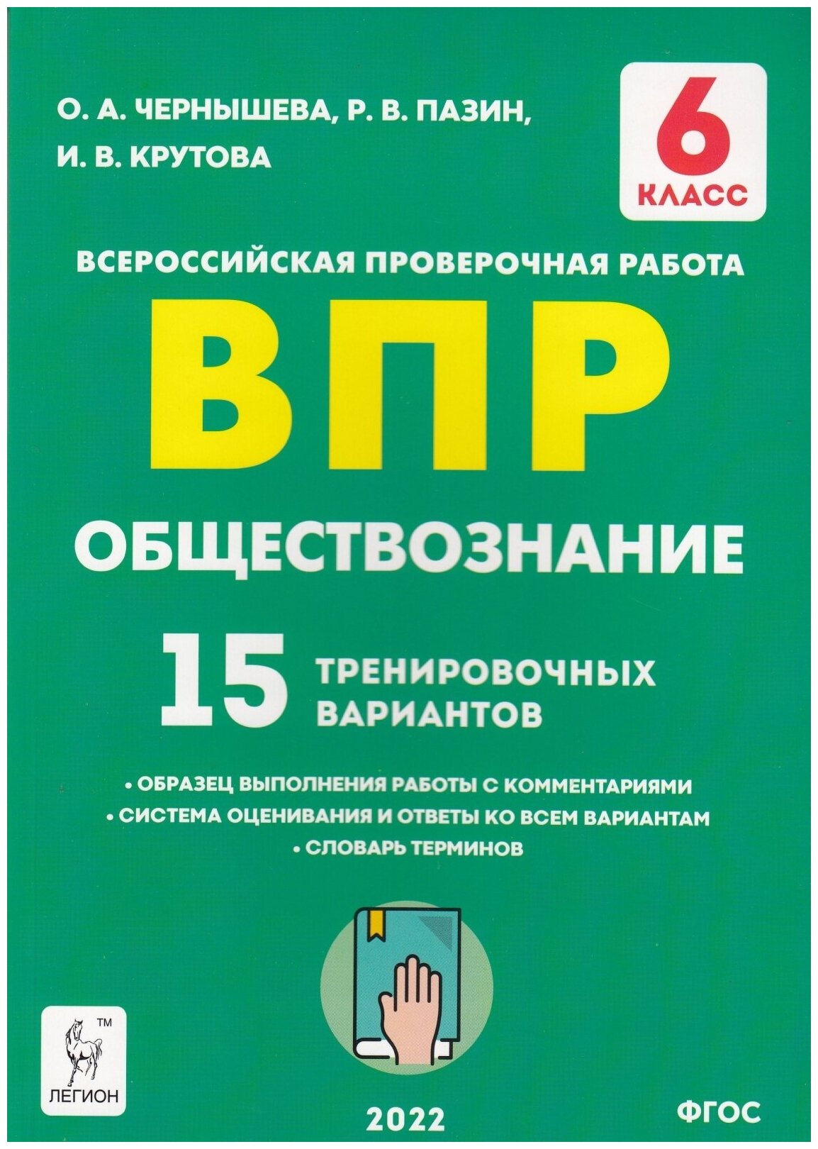 ВПР. Обществознание. 6 класс. 15 тренировочных вариантов. Учебно-методическое пособие (Чернышева Ольга Александровна; Пазин Роман Викторович; Крутова Ирина Владимировна); Легион, 2022