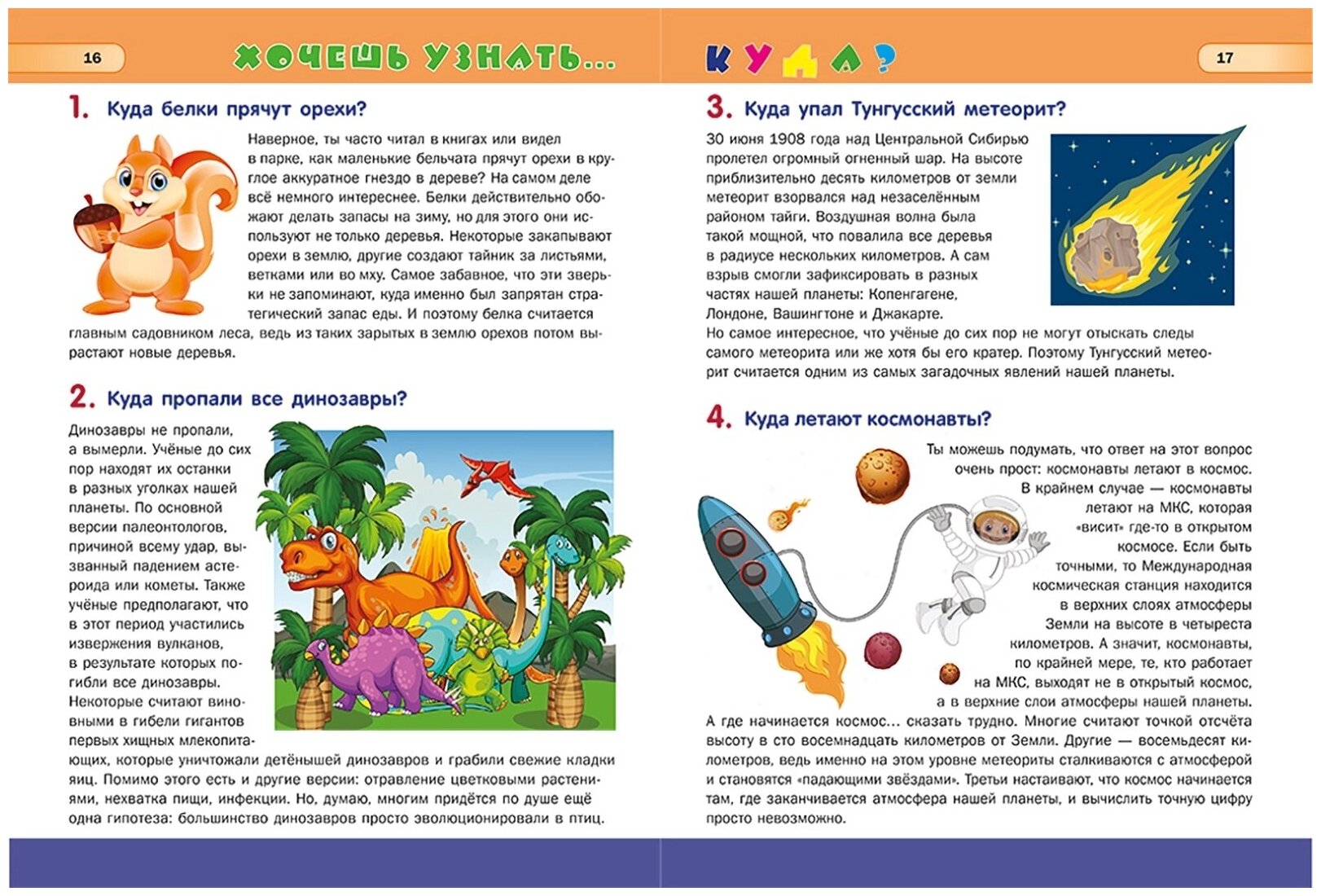 Краткие ответы будут понятны любому ребёнку, а яркие иллюстрации сделают чтение для маленького эрудита ещё более интересным.