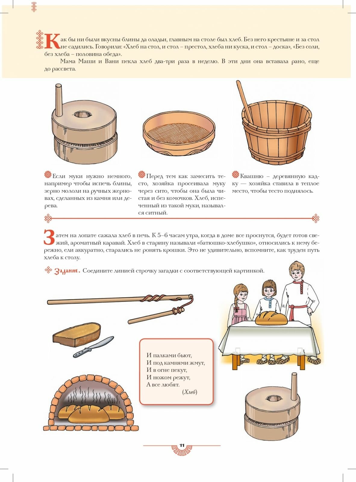 Рабочая тетрадь предназначена для детей старшего дошкольного возраста и младшего школьного возраста. Содержательная часть пособия включает адаптированную для детей этнографическую информацию, дополненную иллюстративным и дидактическим материалом (загадками, творческими заданиями и пр.). Основная цель работы с тетрадью - через знакомство с традиционным укладом жизни русских крестьян приобщить детей к истокам русской народной культуры. Также выполнение заданий нацелено на развитие когнитивных способностей ребенка, расширение его словарного запаса и формирование исторического мышления.