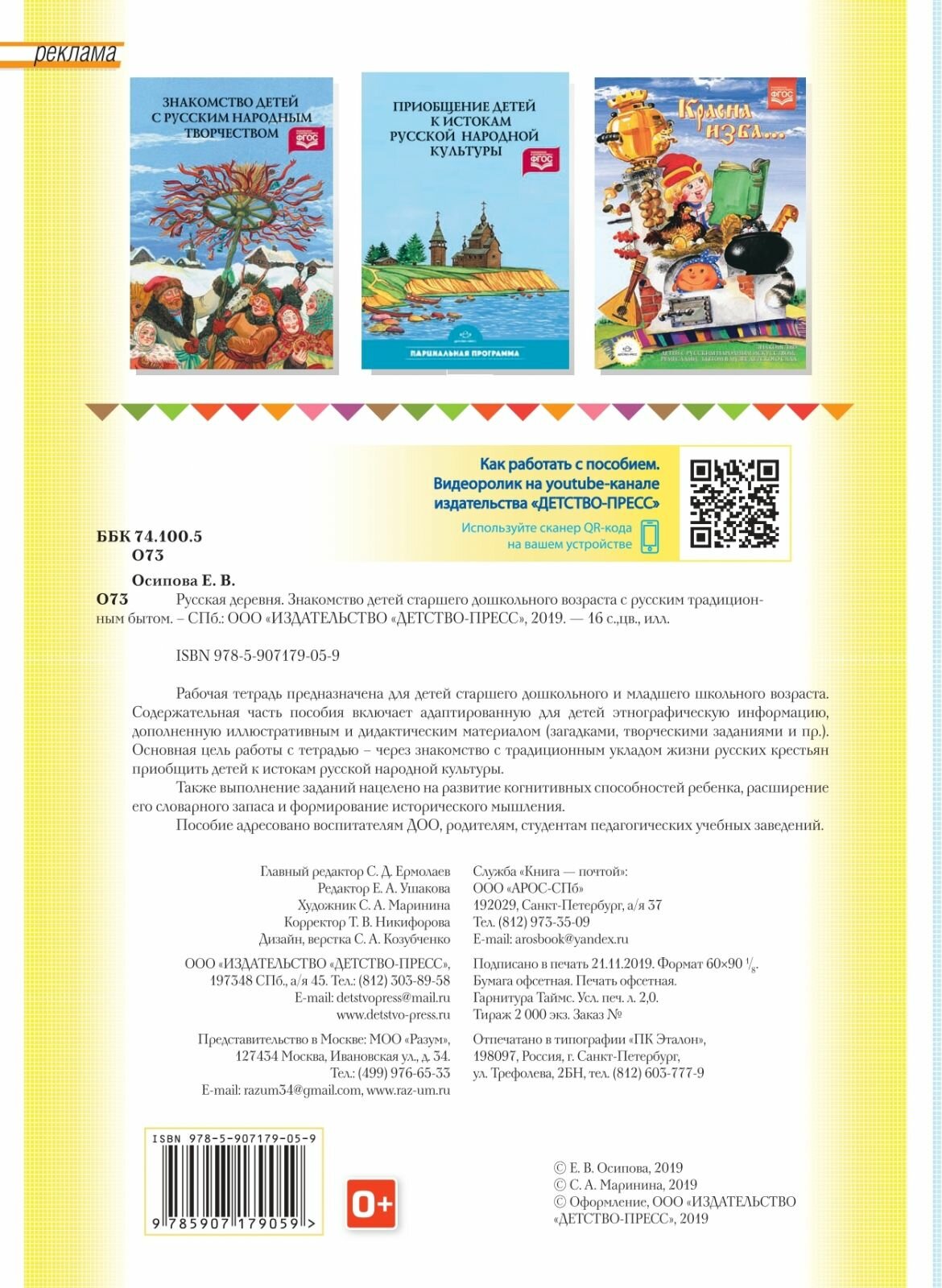 Русская деревня. Знакомство детей старшего дошкольного возраста с русским традиционным бытом. (Осипова Е. В.); Детство-Пресс, 2019