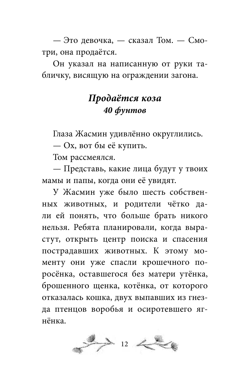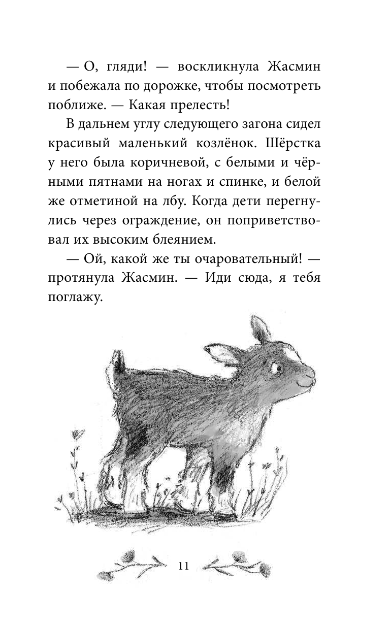 Очень необычное животное для звериных историй в стиле Холли Вебб. И очень необычная история. Козочка Незабудка на удивление проказливый и умный зверь. А девочке Жасмин в этой книге (пока последней в серии) благодаря ней приходится выучить очень важный урок - не всегда спасать всех животных тащить их к себе - самый правильный выбор в пользу самих же животных. В общем, удовольствие от чтения получили, полезный урок вынесли, посмеялись, порадовались, поплакали - вся палитра чувств от одной книги - просто чудесно! Очень хорошее качество печати, плотная белая бумага, приятные иллюстрации, а на обложке - яркая блестящая фольга. Отличная книга для себя и в подарок!