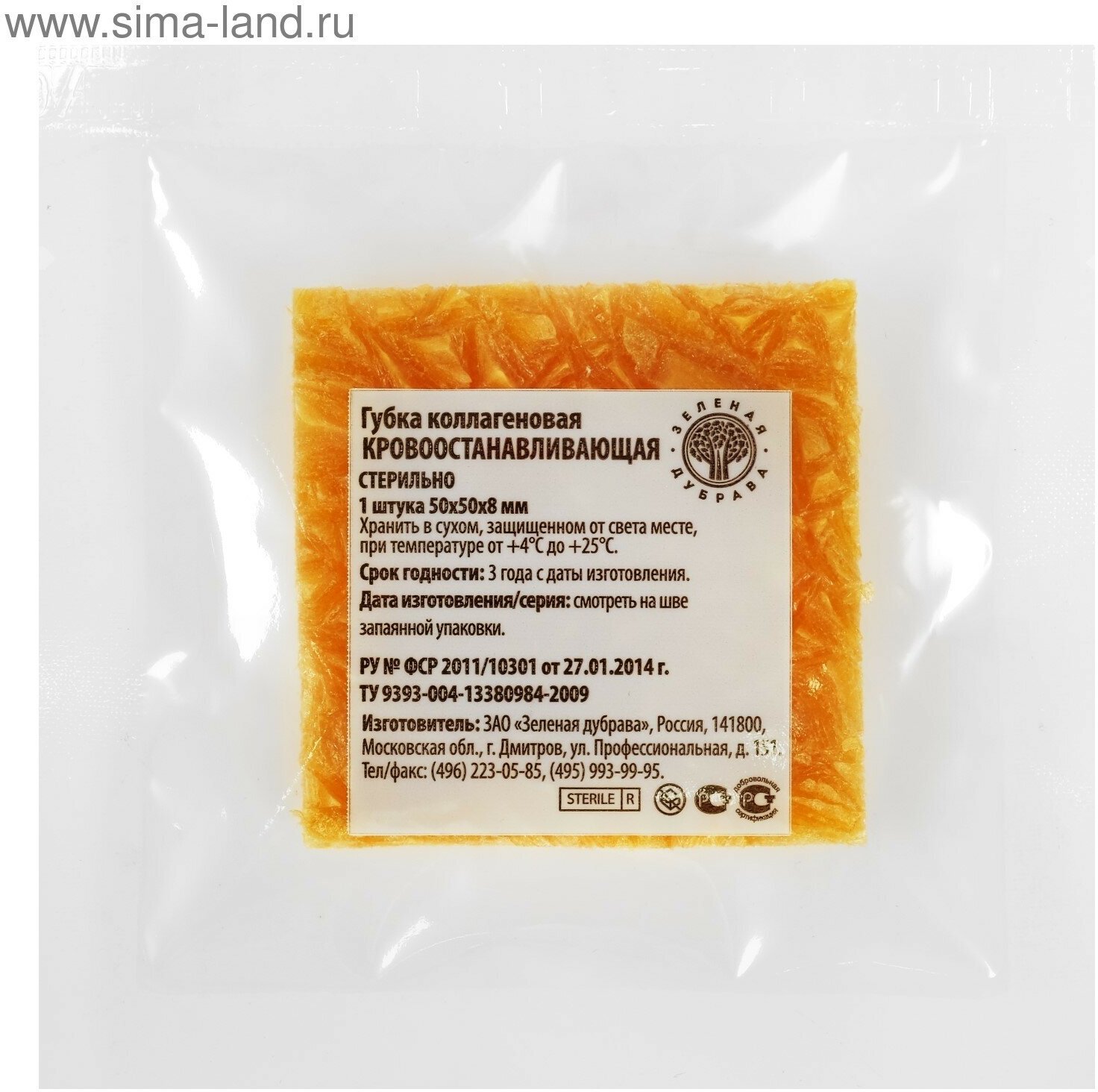 Губка Зеленая Дубрава коллагеновая гемостатическая 5x5 см. 1 шт. Зеленая Дубрава ЗАО (487086)
