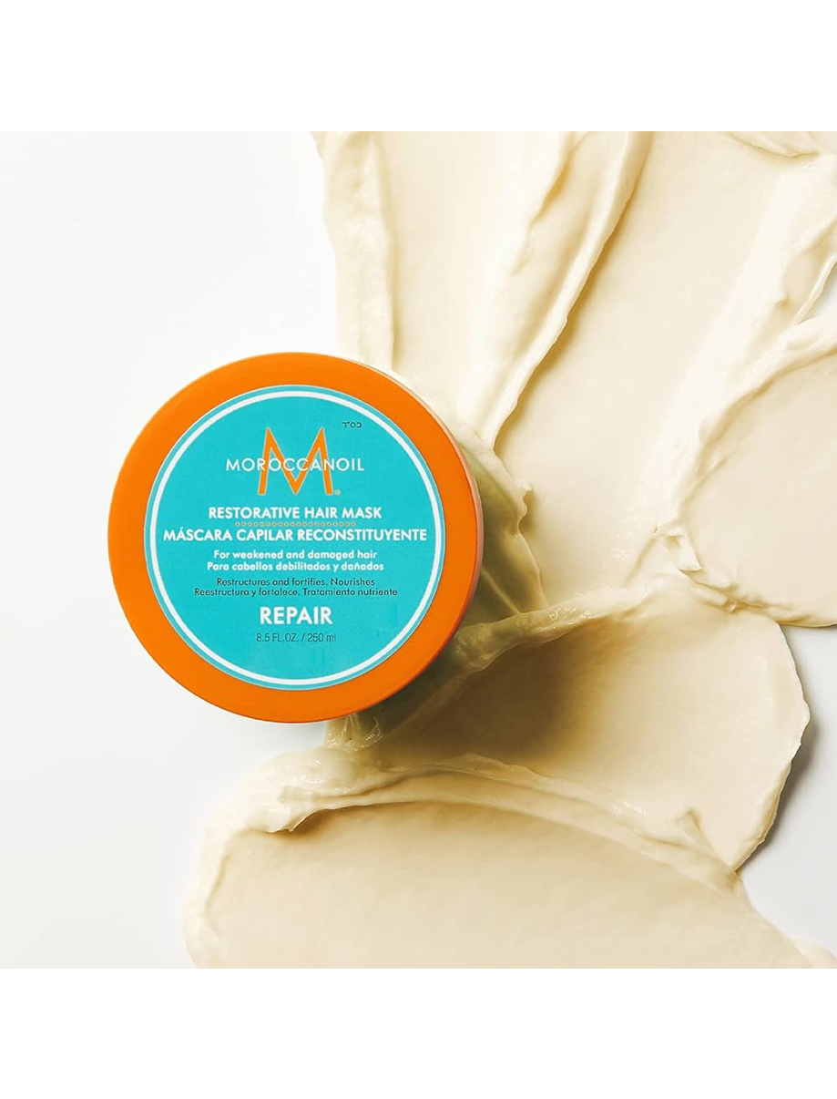 Проводите профессиональный уход за волосами с помощью восстанавливающей маски регулярно один раз в неделю, а затем сокращайте частоту по мере улучшения состояния волос. Для густых и жестких волос рекомендуется соединять восстанавливающую маску с одной чайной ложкой восстанавливающего средства Moroccanoil для придания волосам дополнительного блеска, упругости и эластичности.