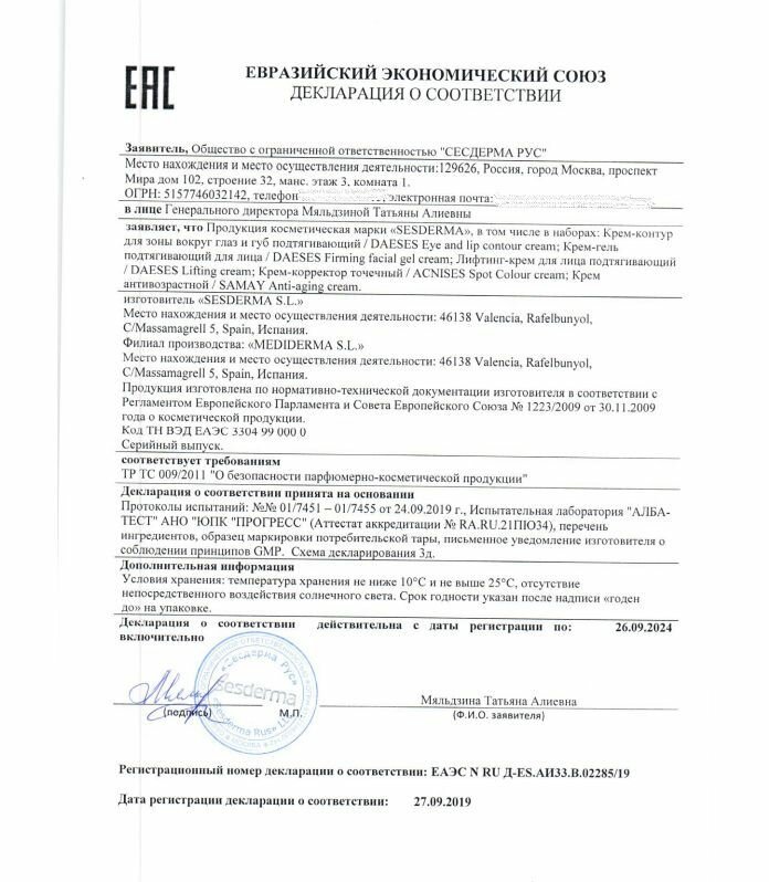 | Способ применения | На чистую кожу нанести немного крема, деликатно втирая кончиками пальцев до полного впитывания. Можно использовать утром и/или вечером. Средство содержит био-ретиноиды и вводится в уход постепенно, с 2-х раз в неделю до ежедневного применения. |