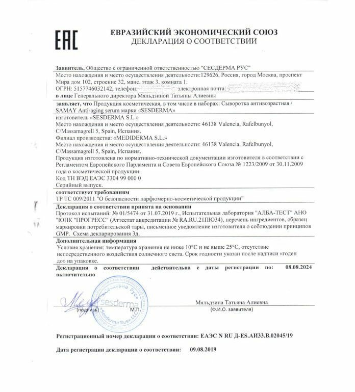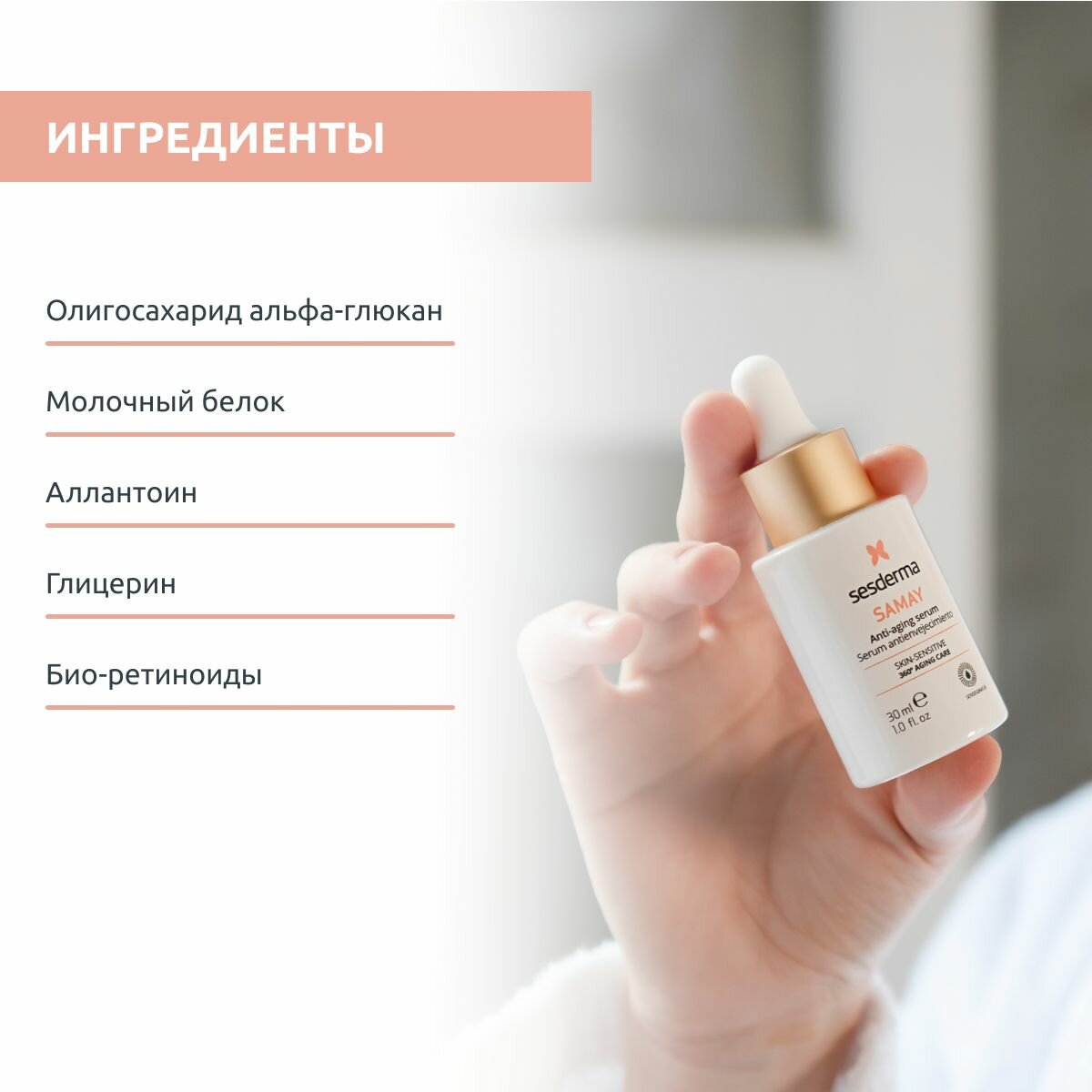 | Полное описание | Антивозрастная сыворотка Samay разработана специально для чувствительной кожи и кожи склонной к раздражению Активные природные компоненты восстанавливают защитный барьер, увлажняют и успокаивают кожу, оказывают омолаживающее действие. Уникальная формула заключена в микроскопические капсулы Sensisomas®, которые улучшают проникновение активных ингредиентов без раздражения чувствительной кожи. |