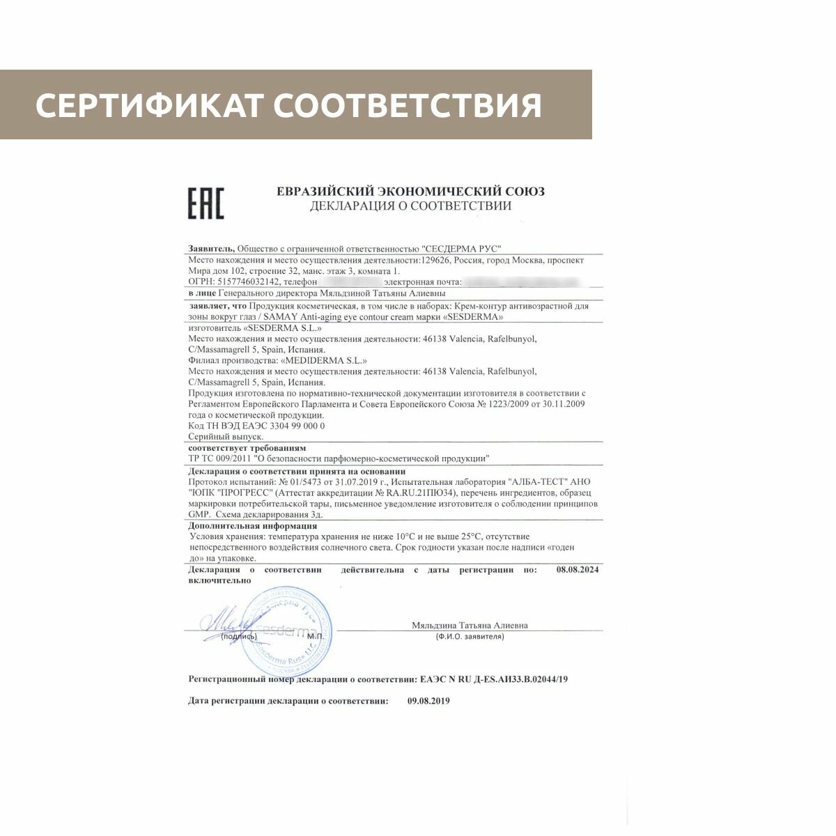 Модель: SAMAY Anti-aging eye contour cream