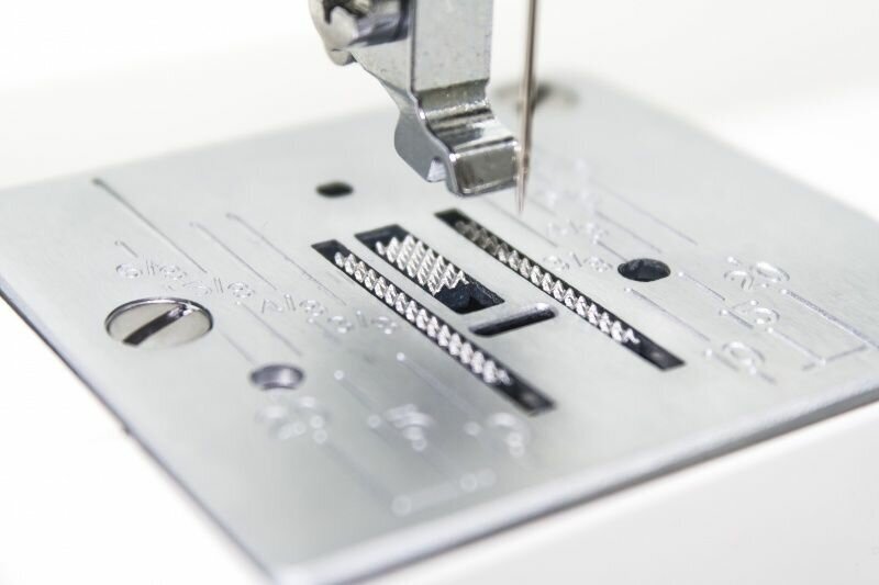 На фронтальной панели размещены переключатели операций и видов строчек. Также есть рычаг для обратного хода. В модели можно установить двойную иглу. Она нужна для укрепления и отделки швов. Вот несколько основных показателей: