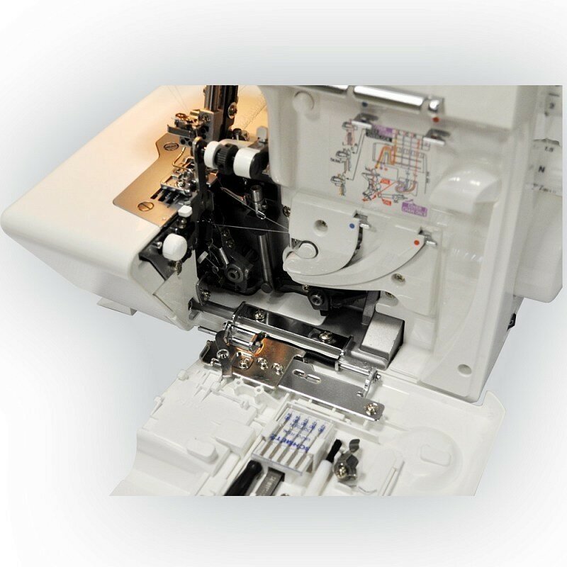 Отличный надежный и многофункциональный оверлок Juki с функцией дифференциальной подачи ткани - это именно то, что Вам нужно. Имеет в своем арсенале 15 краеобметочных швов, включая шов Flatlock. Переключение на с 4 на 3 и 2 ниточный шов происходит очень просто.