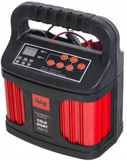 | Прочие особенности и свойства | Пуско-зарядное устройство Fubag COLD START 300/12 оправдывает свое название в полной мере:этот агрегат предназначен для помощи в запуске двигателя автомобиля в холодное время года. Вы сможете заряжать аккумуляторы с емкостью до 300 А·ч. Необходимо, чтобы напряжение в бортовой сети транспортного средства составляло 12 В. Устройство способно не только заряжать автоаккумуляторы, но и генерировать пусковой ток, равный 50 А. Ток заряда может изменяться от 2 до 15 А. Регулировка тока заряда производится в ручном режиме.,Пуско-зарядное устройство Fubag COLD START 300/12 имеет предпусковой режим, который будет актуален в случае, когда требуется очень быстро привести аккумулятор в рабочее состояние. Предусмотрена функция автоматического отключения зарядки. Безопасность эксплуатации устройства обеспечивается за счет наличия защиты от короткого замыкания и защиты от перегрева. Вы по достоинству оцените удобство интуитивно понятной панели управления, которой оснащено устройство. Модель, масса которой равна 1.5 кг, имеет удобную ручку для переноски. |