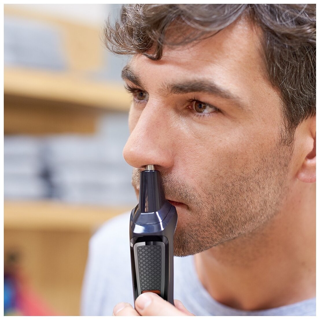 | Прочие особенности и свойства | Высококлассное моделирование, - Самозатачивающиеся, безопасные для кожи лезвия для идеального подравнивания., , Универсальность, - Подравнивайте волосы на голове и лице и создавайте свой стиль с 7 принадлежностями., - Триммер стрижет волосы и создает контуры бороды для завершения образа., - Триммер для носа бережно удаляет нежелательные волоски в носу и ушах., - 5 гребней для подравнивания волос на лице и голове., , Легко использовать, - До 60 минут автономной работы после зарядки., - Насадки удобно промывать., - Чехол для удобства при хранении и в путешествиях., , Самозатачивающиеся, безопасные для кожи лезвия для идеального подравнивания., Идеальное подравнивание день за днем. Стальные лезвия всегда остаются такими же острыми, как и в первый день использования, даже после 3 лет работы: они затачиваются самостоятельно, слегка касаясь друг друга во время работы., , Подравнивайте волосы на голове и лице и создавайте свой стиль с 7 принадлежностями., Этот удобный универсальный триммер помогает создавать различные образы, подравнивая волосы на лице и голове., , Триммер стрижет волосы и создает контуры бороды для завершения образа., Используйте триммер без гребня для создания четких, ровных контуров бороды, шеи и линии роста волос. Самозатачивающиеся лезвия всегда остаются такими же острыми, как и в первый день использования, даже после 3 лет работы., , Триммер для носа бережно удаляет нежелательные волоски в носу и ушах., Простое и комфортное избавление от нежелательных волосков в носу и ушах., , 5 гребней для подравнивания волос на лице и голове., 2 гребня для щетины (1,2 мм), 2 гребня для бороды (3,5 мм) и 1 гребень для волос (9 мм)., , Насадки удобно промывать., Просто отсоедините лезвия и гребни и промойте их под струей воды., , Чехол для удобства при хранении и в путешествиях., Воспользуйтесь удобным чехлом для хранения или путешествий, который защищает триммер и насадки при транспортировке. |