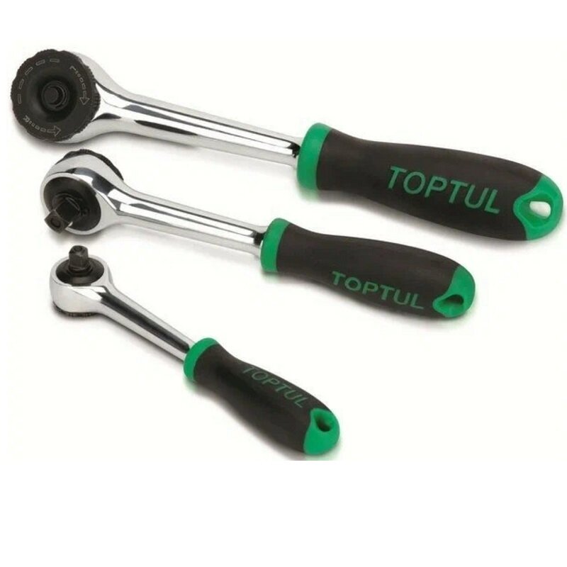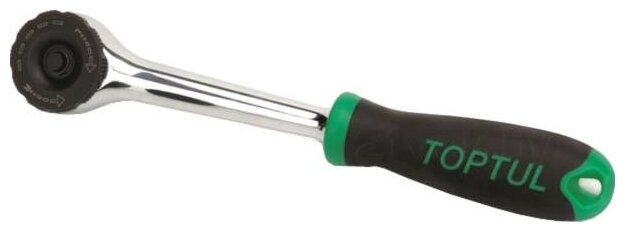 Трещотка 1/2" безредукторная 265мм TOPTUL_x000D_Назначение: применяется с головками, имеющими присоединительный размер 1/2". Инструмент оснащен механизмом быстрой смены головок и удобной прорезиненной ручкой. _x000D_Рекомендуется для профессионального использования.