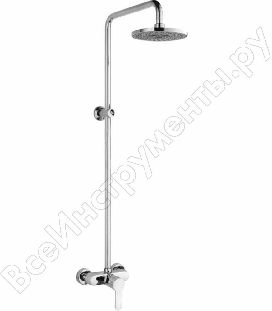 - Комплектация: Смеситель, душевая стойка, верхний душ, держатель для душевой лейки, настенный держатель, отражатели, эксцентрики