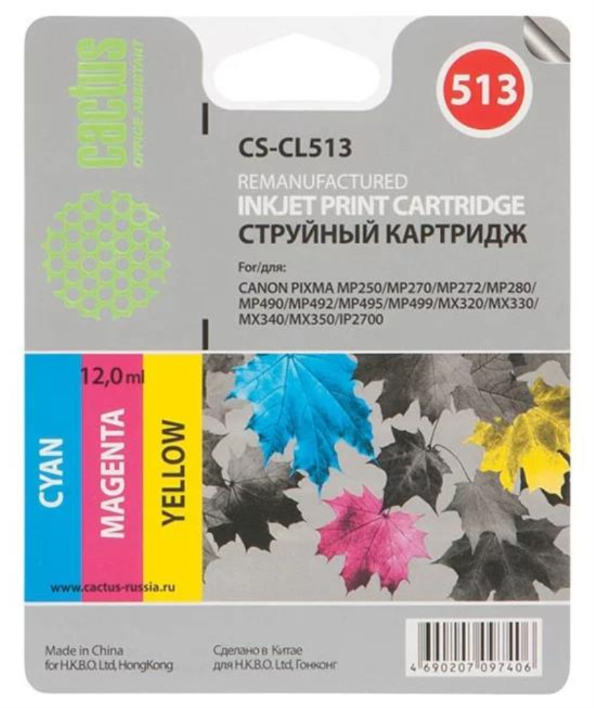 Картридж для струйного принтера Cactus CS-CL513 cyan/magneta/yellow