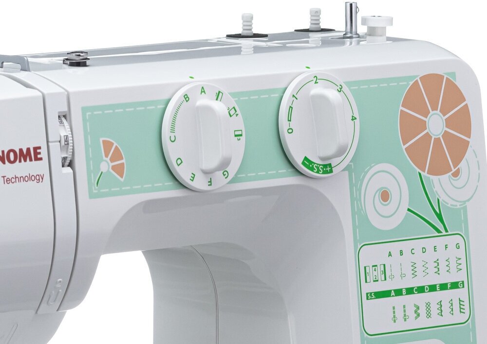 Бытовая швейная машинка базового уровня для всех видов тканей. Относится к бюджетному классу бытовых швейных машин для ремонта одежды и несложного пошива. Janome оснащена 15 швейными операциями и классическим вертикальным качающимся челноком.