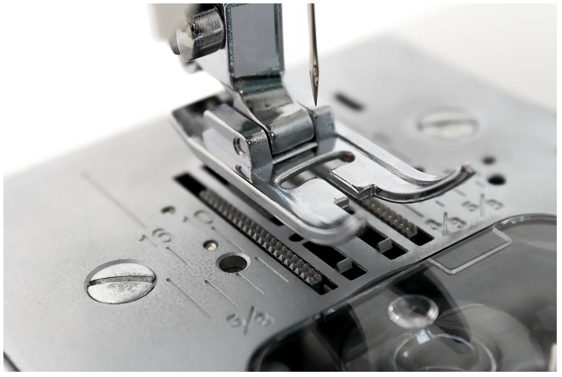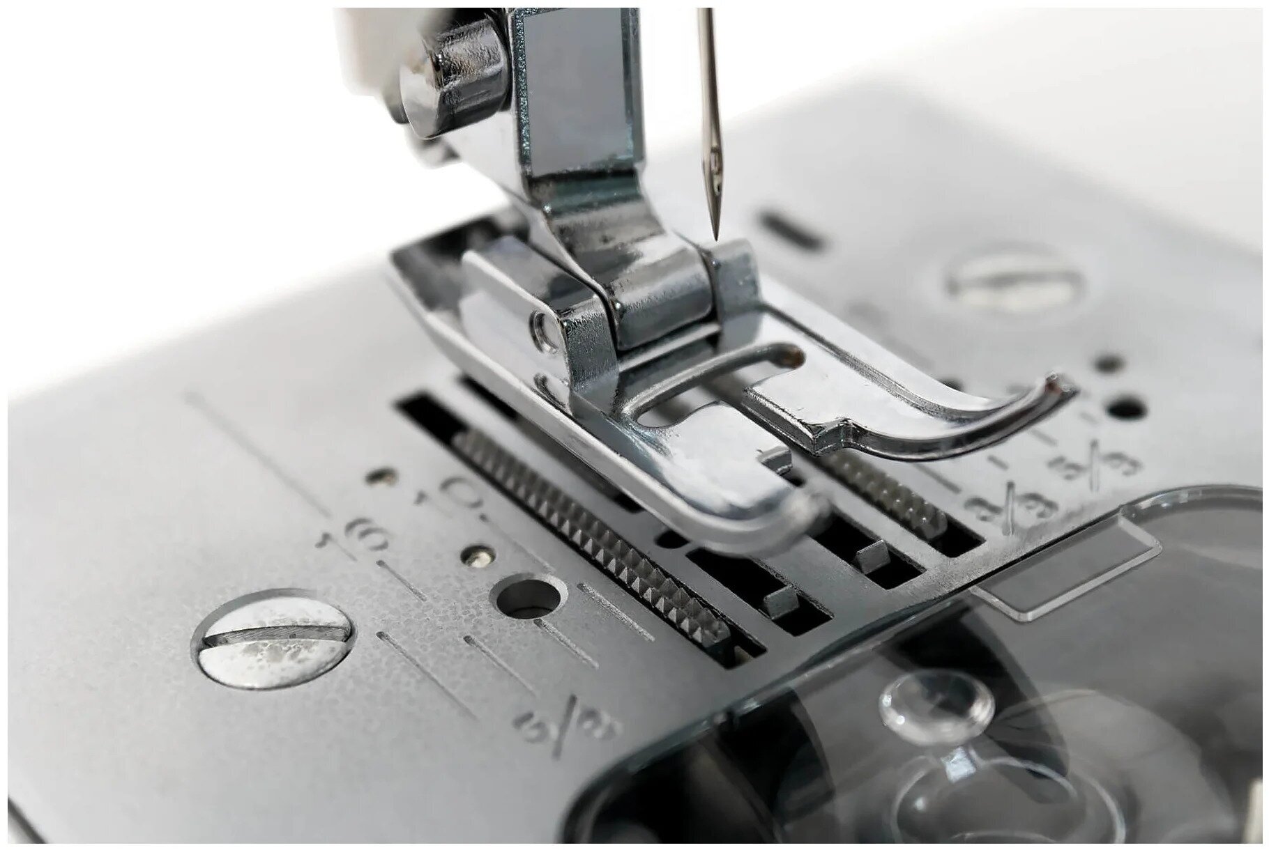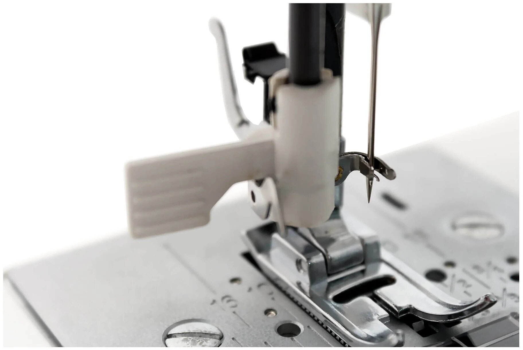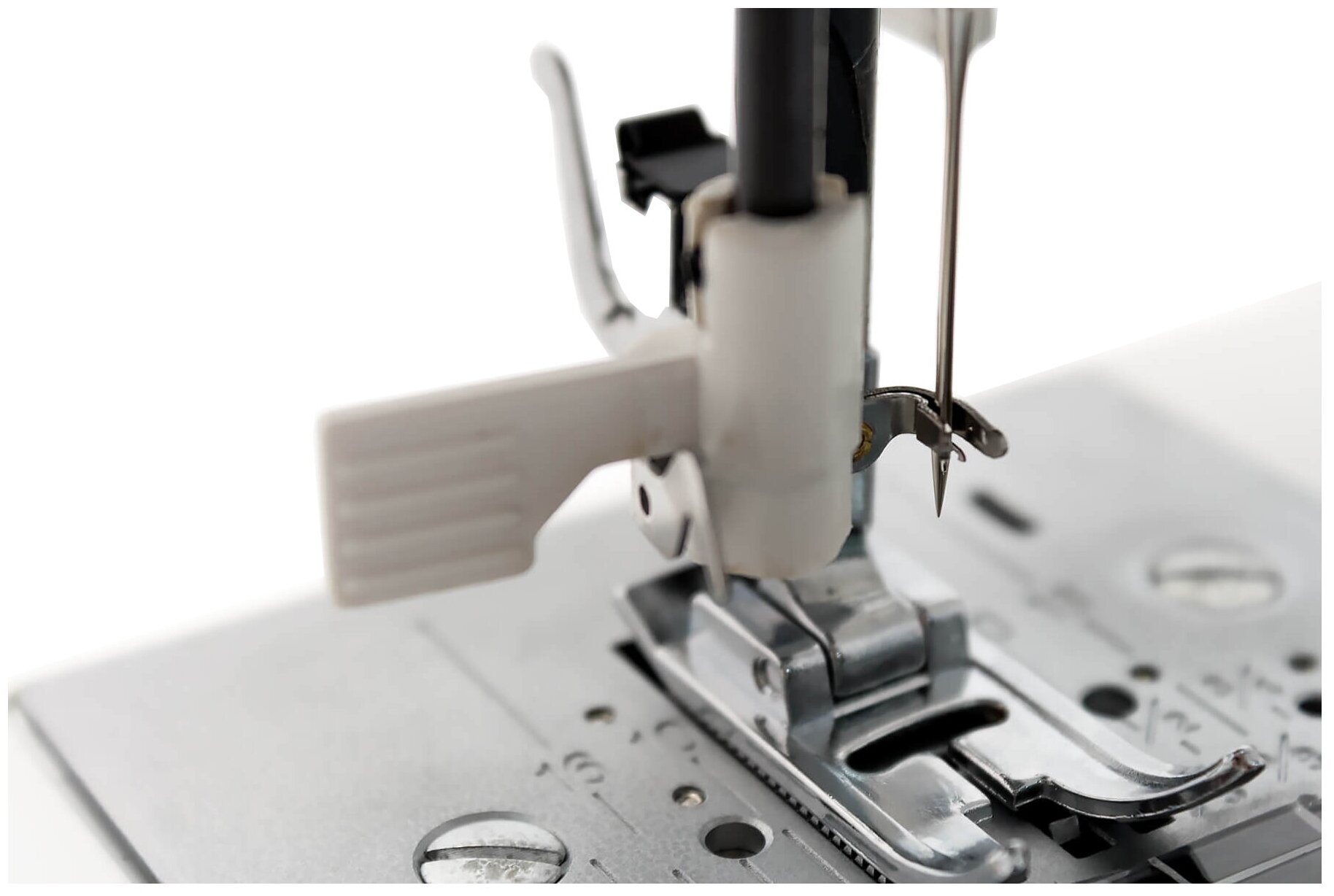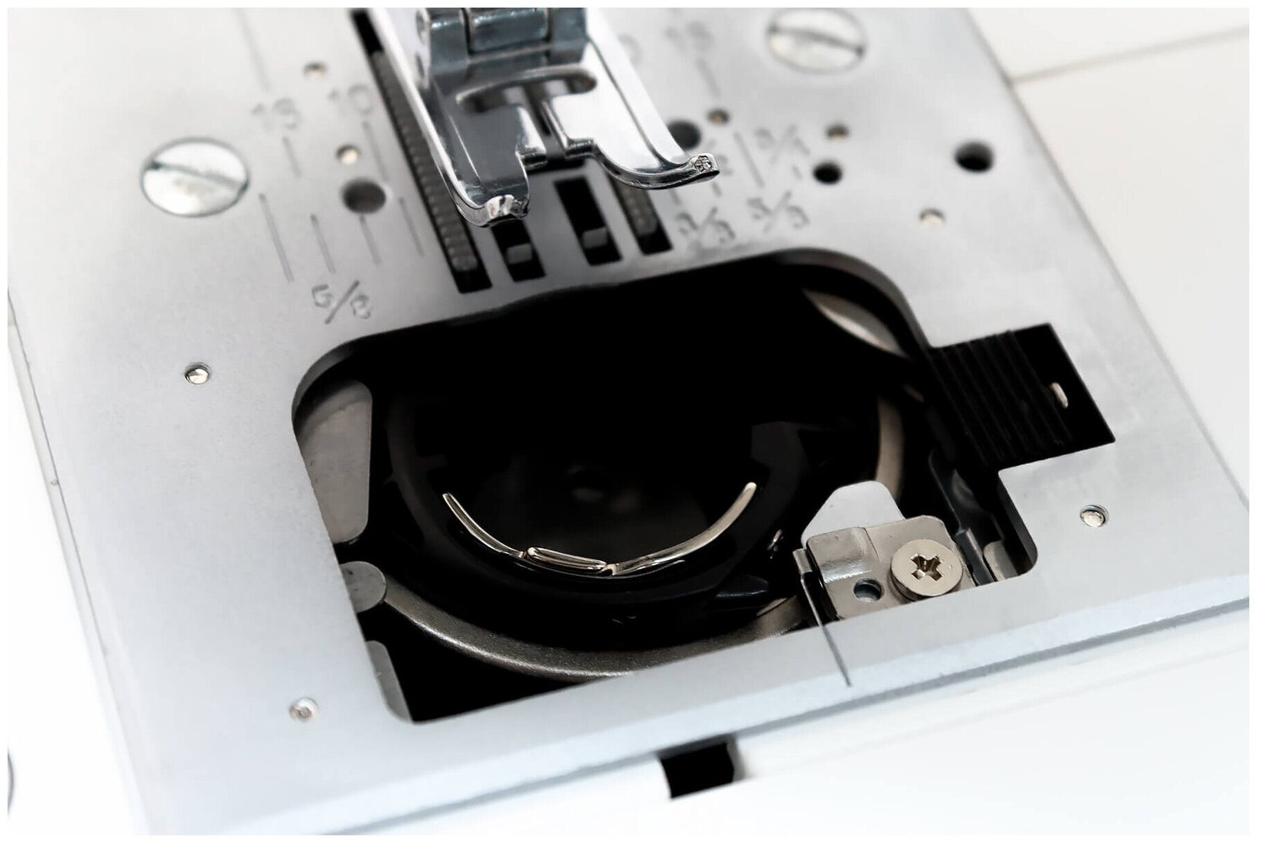 Современный горизонтальный челнок позволяет устанавливать шпульку и заправлять нижнюю нить без особого труда, а его практически бесшумная работа не будет мешать во время шитья.