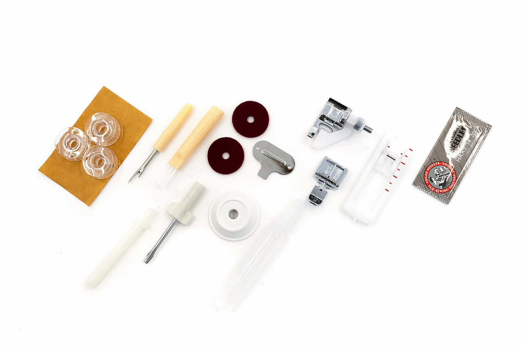 | Комплект поставки | вспарыватель; держатель для второй катушки; набор игл; масло; отвертка дискообразная; отвертка регулировки натяжения в челноке; педаль; инструкция; фетровые прокладки для катушек; шпульки; щеточка |