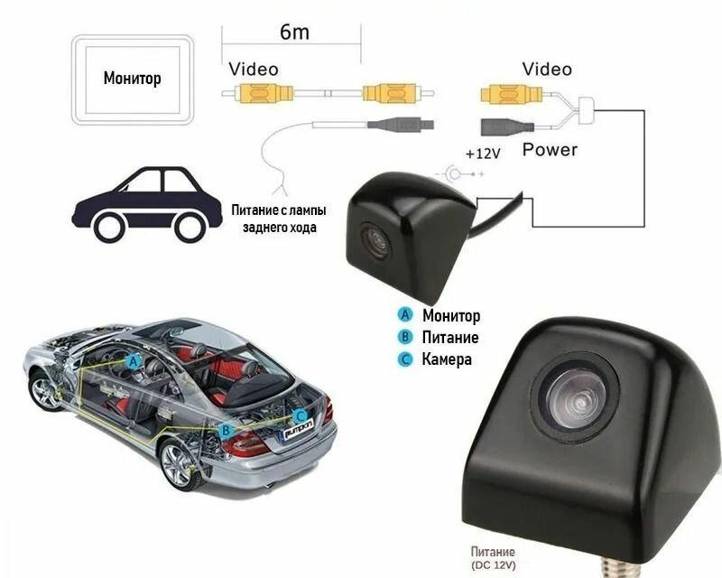 Устройство оснащено CMOS-матрицей, позволяющей получить разрешение 628x586 dpi. Для полноценной работы достаточно уровня освещенности от 0.1 лк. Прибор подключается к бортовой сети автомобиля на 12 В, а защита класса IP68 способствует комфортной работе при температуре от -20 до +90 градусов.
