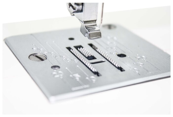 Janome - подходящий вариант для тех, кто учится шить или достаёт машинку несколько раз в году. Эту модель отличают простое механическое управление, базовый набор строчек и доступная цена. В составе четырнадцати швейных операций Вы найдёте семь рабочих и семь эластичных строчек, в том числе две оверлочных строчки. Прорезная петля обрабатывается в полуавтоматическом режиме. Машина хорошо справляется с разными типами тканей. В отзывах пользователей отмечено наличие рукавной платформы и возможности установки двойной иглы. Подсветка рабочей области обеспечивает комфортную работу в вечернее время. Чтобы расширить возможности модели, купите несколько дополнительных аксессуаров (лапку для потайной молнии, оверлочную лапку и т.д.).