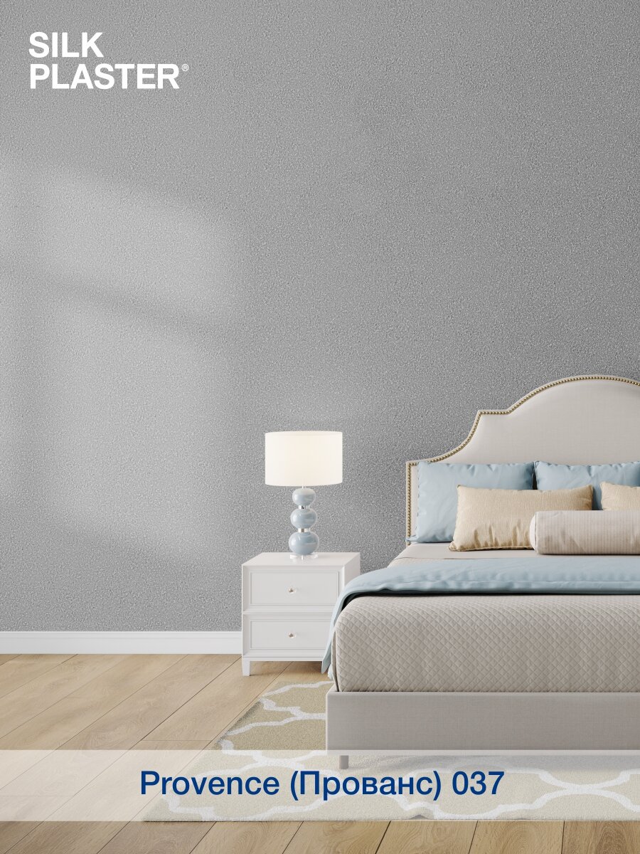 Коллекция жидких обоев SILK PLASTER ПРОВАНС/ Provence 037 - жидкие обои дымчатого цвета с деликатными белыми вкраплениями. Они прекрасно впишутся в гостиные, добавят своеобразной мягкости в интерьер комнаты отдыха, в кабинет или спальню. Будут интересно смотреться с насыщенными серо-кофейными и чёрными полами из дерева или камня. Мебель, текстиль в схожей пепельной палитре придадут обстановке элегантности. Декор простых форм, в приглушенных золотистых и серебристых оттенках завершит общую идиллию с Provence 037. Для подготовки поверхности рекомендуется использовать Грунт для жидких обоев SILK PLASTER, а для дополнительной защиты материала используйте Лак для жидких обоев SILK PLASTER. Для нанесения материала используйте Кельма для жидких обоев SILK PLASTER. Расход одной упаковки - до 3,5 м. кв. Количество воды указано на этикетке упаковки.