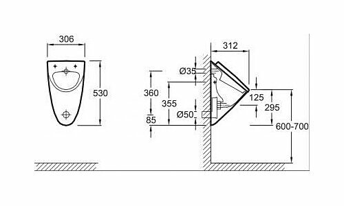 | Вид сифона для писсуара | u-образный |