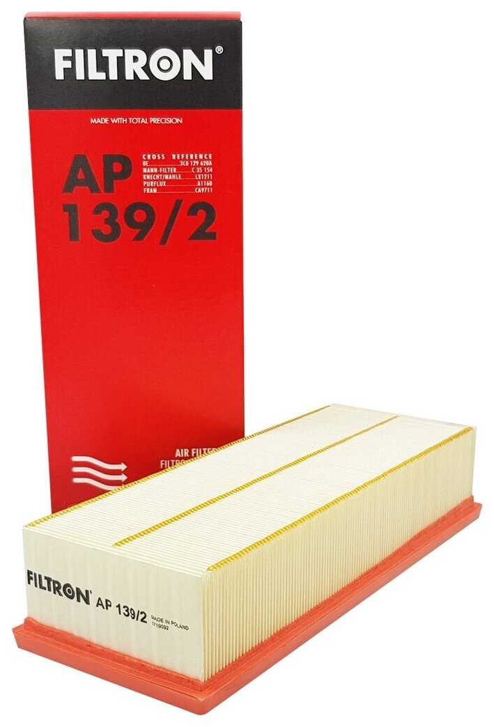 Фильтр воздушный FILTRON AP 139/2 для Audi A3, VW Golf V/Touran, Scoda Octavia 1.9TDi/2.0TDi 03> изготовлен с помощью современных фильтрующих материалов, созданных, в частности, на основе целлюлозных или синтетических волокон. Эти материалы обеспечивают эффективность фильтрации на уровне 99,9% для частиц размером всего в несколько микрон.Фильтрующая среда, стойкая к распространению огняВсе воздушные фильтры марки FILTRON имеют фильтрующие среды, которые, в соответствии с классом горючести F1 или S1, не поддерживают огонь (способствуют самоугасанию пламени) и могут защитить пассажиров от пожара транспортного средства в случае всасывания окурка сигареты в систему подачи воздуха.Прочные прокладки воздушных фильтров, обеспечивающие герметичностьДля производства прокладок воздушных фильтров используется уникальная смесь полиуретана, отличающаяся упругостью и устойчивостью к сжатию в экстремально высоких температурах. Благодаря исключительным свойствам прокладок, воздушные фильтры FILTRON сохраняют герметичность в корпусе даже в очень сложных условиях эксплуатации.Складки стабилизированы с помощью перфорированного покрытияСкладки (гофры) воздушных фильтров FILTRON стабилизируются с помощью специального перфорированного покрытия, предотвращающего слипание соседних складок. Благодаря равномерному распределению складок, воздух фильтруется всей поверхностью фильтрующего материала, способствуя полному использованию мощности двигателя.
