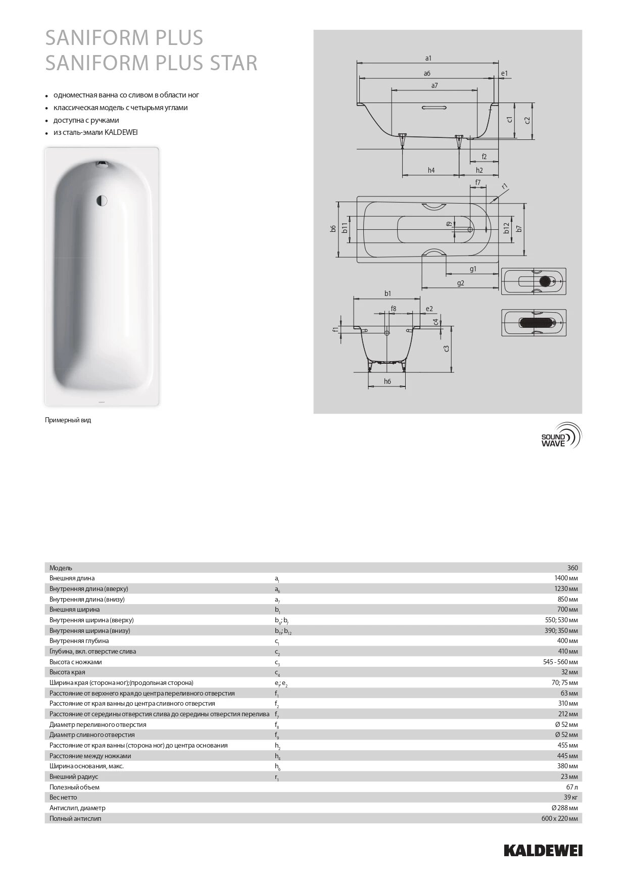 Сервис сравнения цен СкидкаГИД предлагает сравнить цены на товар «Ванна стальная Kaldewei Saniform Plus 360-1 140x70»