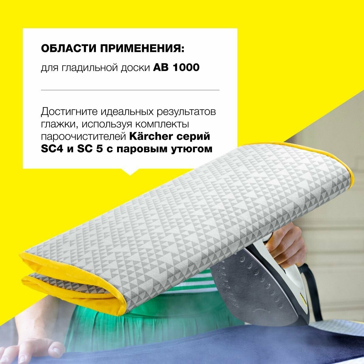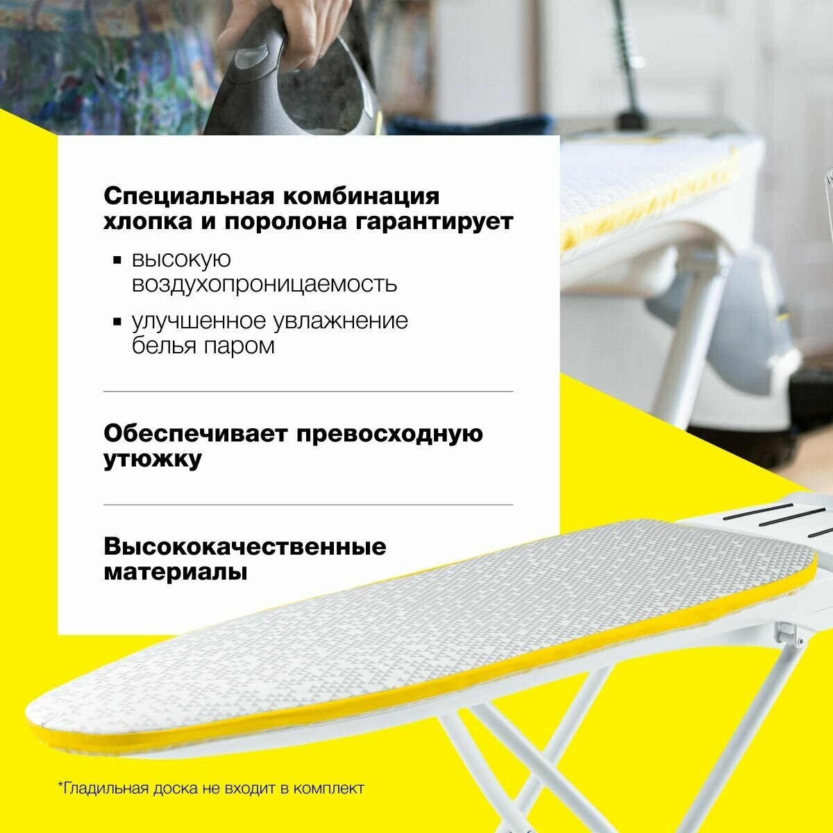Хлопковое покрытие для гладильной доски AB 1000. Идеально для получения превосходных результатов глажения. Специальная комбинация хлопка и пенопласта, обладает высокой воздухопроницаемостью, гарантирует улучшенное увлажнение белья паром.