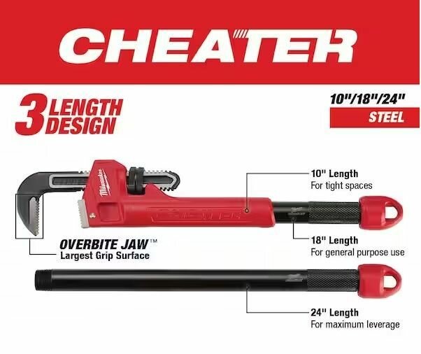 Ключ имеет 3 длины: 10"/250 мм - для труднодоступных мест, 8"/450 - для стандартных видов работ, 24"/600 - максимальный рычаг, для самых сложных работ.