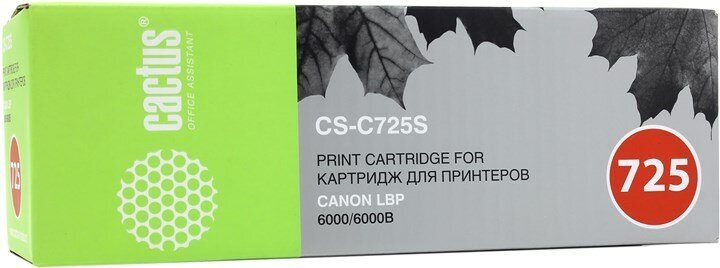 Картридж Cactus CS-C725 для лазерных принтеров Canon i-Sensys.Расходные материалы Cactus для лазерной печати максимизируют характеристики принтера. Обеспечивают повышенную чёткость чёрного текста и плавность переходов оттенков серого цвета и полутонов, позволяют отображать мельчайшие детали изображения. Обеспечивают надежное качество печати.